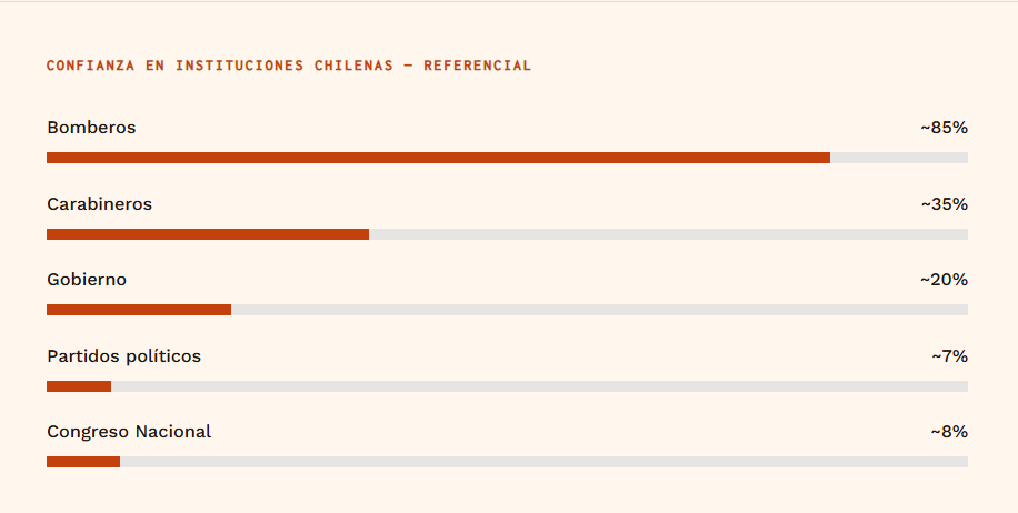 Las encuestas de opinión pública en Chile llevan años contando la misma historia: el Congreso Nacional es una de las instituciones menos confiables del país. Según distintos estudios, la confianza ciudadana en el parlamento oscila entre el 5% y el 12%, dependiendo del año y la metodología. Es un número que debería generar urgencia institucional. En cambio, genera, en el mejor de los casos, discursos de transparencia que no cambian nada.